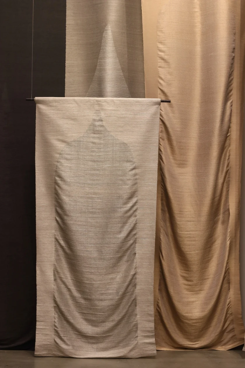 Pinaree Sanpitak, Breast Stupas, 2000-2001. Unthreaded silk Fabric supported by Jim Thompson, The Thai Silk Co. Ltd, 500 x 122 cm (each). Photo: Aroon Peampoonsopon . Courtesy of the Jim Thompson Art Center and the James H.W. Thompson Foundation © Jim Thompson Art Center