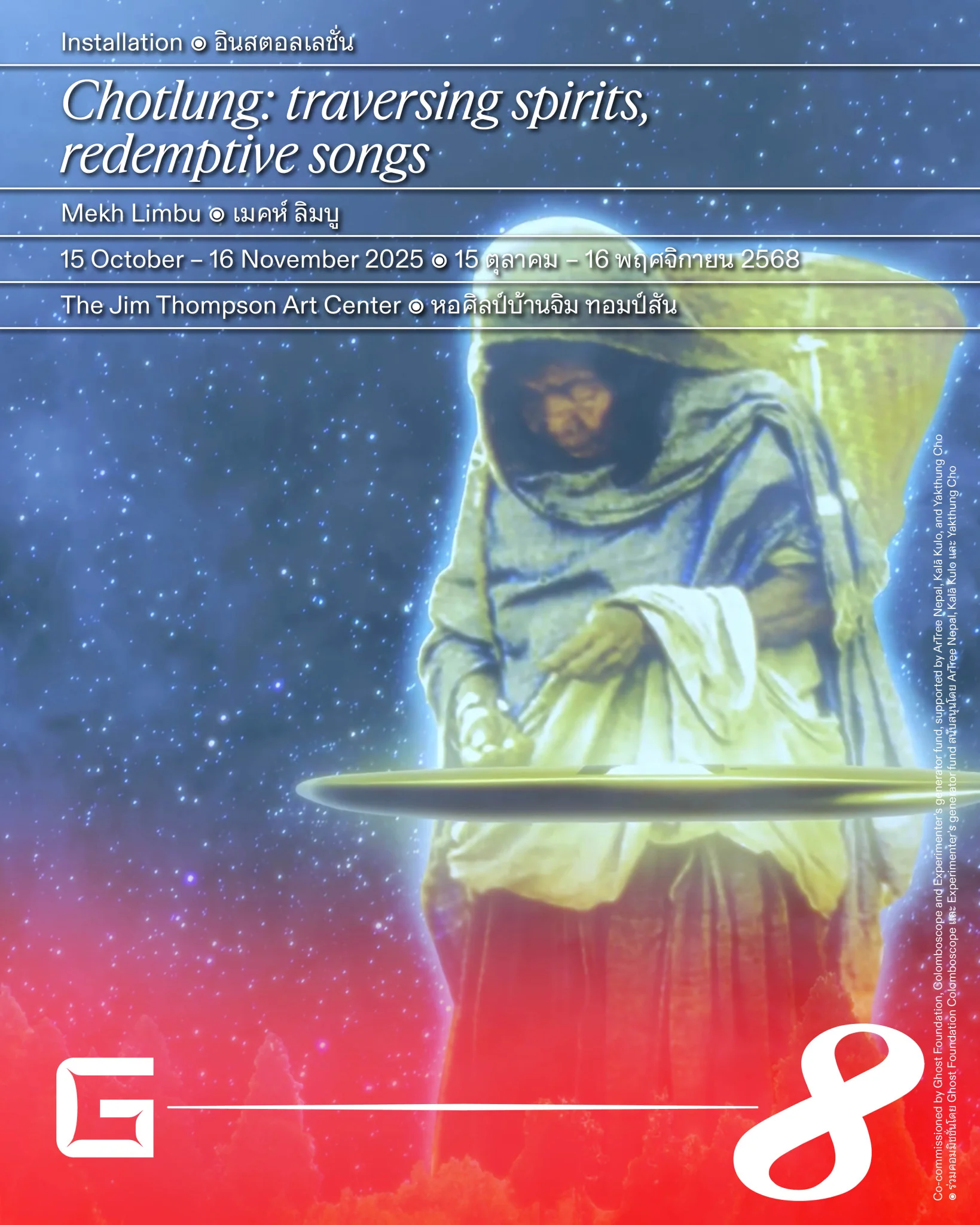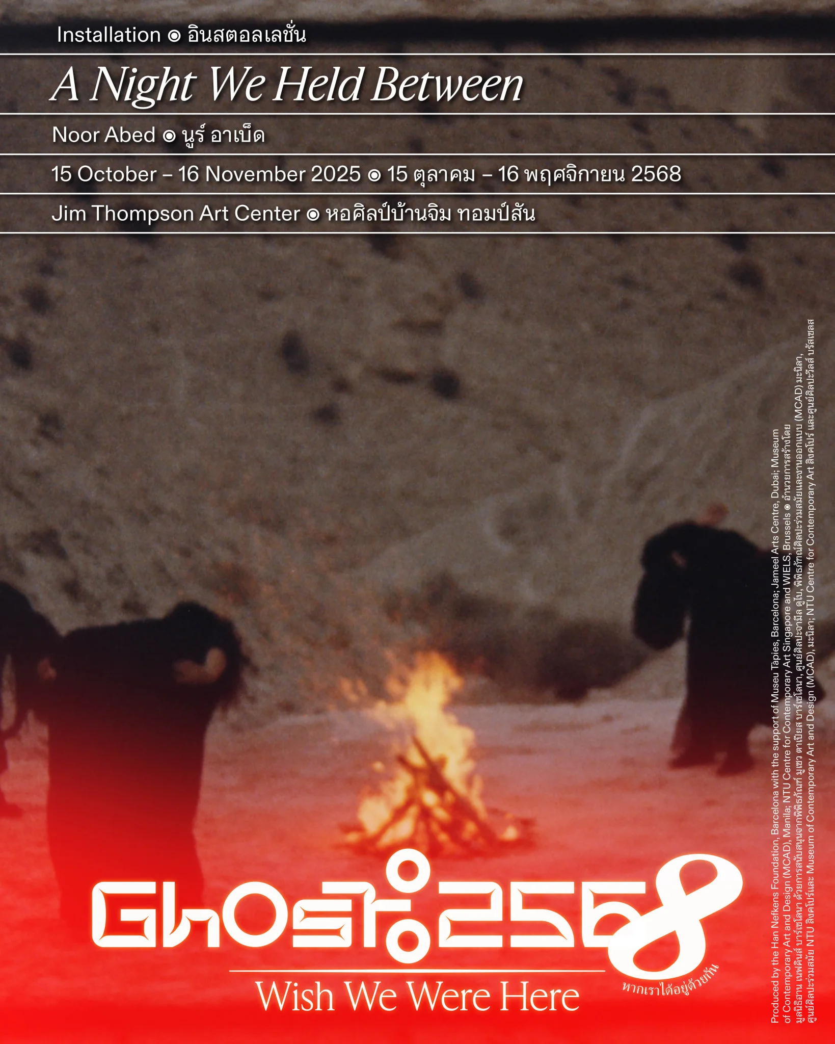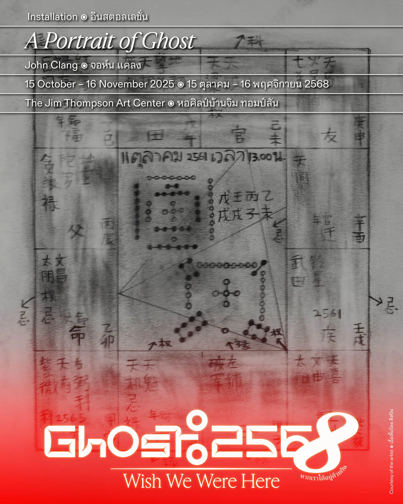The third and final edition of Ghost, a video and performance art series—Ghost 2568: Wish We Were Here, curated by Amal Khalaf— takes place from 15 October – 16 November, 2025, across 8 venues in Bangkok. The curators of the first two editions, Christina Li and Korakrit Arunanondchai, return to “haunt” Ghost:2568 with special projects and Host returns, an alternative pedagogical platform by Pongsakorn Yananissorn.