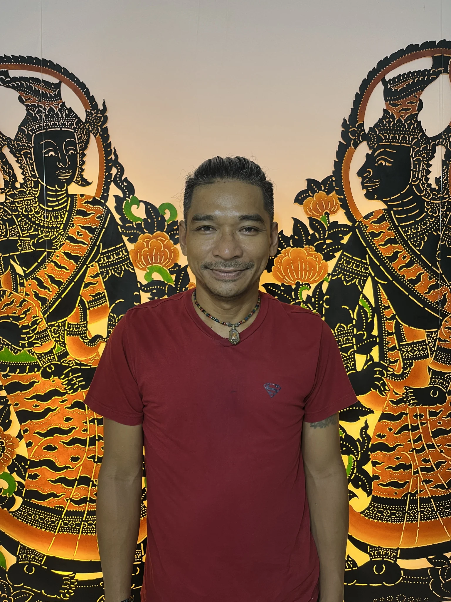Chalan Thawornnukulphong is a dedicated artist passionately committed to preserving the ancient art of cowhide shadow puppetry at Khanon Temple, Ratchaburi. Learning initially from his father, a revered shadow puppet master, and refining his skills through formal art education, Thawornnukulphong meticulously crafts intricate figures. His work often draws from the Phra Vessantara Jataka, breathing new life into these spiritually significant narratives. Beyond traditional creations, he also dedicates himself to repairing existing puppets and creating innovative contemporary crafts, ensuring the vibrant survival and evolution of this cherished art form for modern audiences.