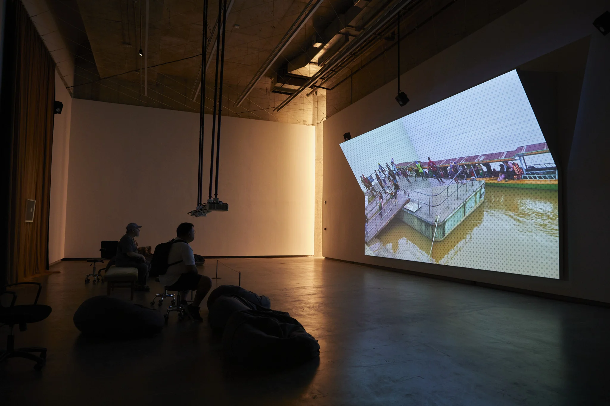This video installation emerges from Supaparinya’s long-standing engagement with shifting landscapes in Thailand and across the Mekong region. Since the mid-2000s, she has traveled extensively along the Mekong area, producing works that respond to the socio-political transformations of diverse localities shaped by Cold War legacies. MO NUM EN TS reflects on the fragmented and uneven remnants of Cold War-era infrastructures, prompting her to investigate their deeper structural and ideological underpinnings.