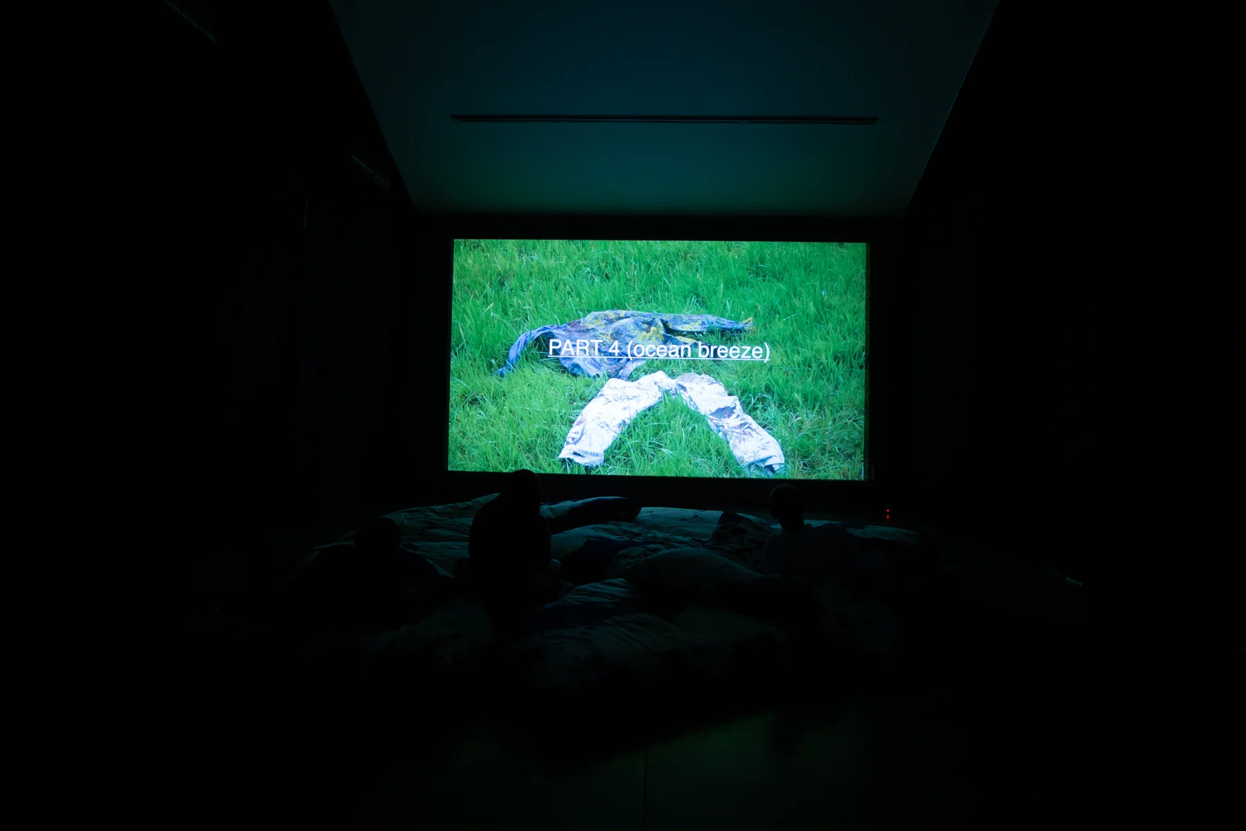 2012-2555 (2012) is a collection of Korakrit’s experiences and served as the starting point for his inspiration to make this trilogy as a collection of his memories in Thailand and the States. Those memories with Korakrit’s family, friends and at work his personal remarks on growing up in both cultures. The exhibition is also a reflection of his passion for denim and painting. He likes to document with a digital video recorder. His approach to the concept of painting is based on his syncretism whereas his interrogation without bias brings about new dialogue such as through the denim intervention. As both denim and the painting canvas are made from cotton, Korakrit deploys denim in the same way that other artists perceive the white canvas. This underlines an alternative way of understanding what art means from Korakrit’s perspective.