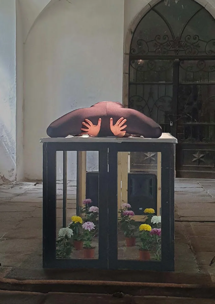 “NO-body” Dance Video was created in December 2015. In 2017, the piece was translated to stage, for the request of Jitti Chompee, director of Unfolding Kafka festival, Bangkok. The dance installation by Roni Chadash, who [un]folds her limbs, impresses Jitti by her peculiar physicality and reminds him of some odd animal in his Kafka’s zoo.