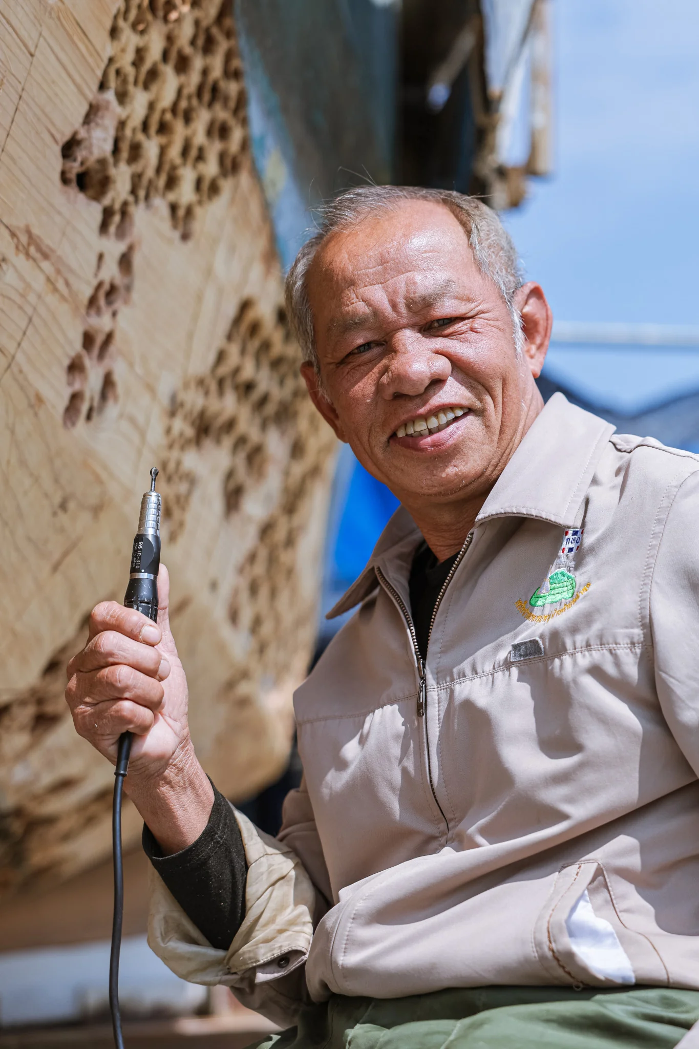 Kamchan Yano is an exceptionally gifted woodcarver renowned for transforming discarded wood into intricate, kinetic narratives of Thai rural life. Learning from his grandfather, Saeng Luesuwan, a pioneer in ladle handle carving, Yano masterfully imbues humble materials with remarkable delicacy and humor. His unique genius lies in incorporating sophisticated mechanisms that bring his wooden figures to life, moving with surprising fluidity. His captivating work, ranging from small carvings to dynamic installations, has been exhibited internationally, ensuring the profound legacy of this unique craft and the cherished spirit of past generations continue to resonate.