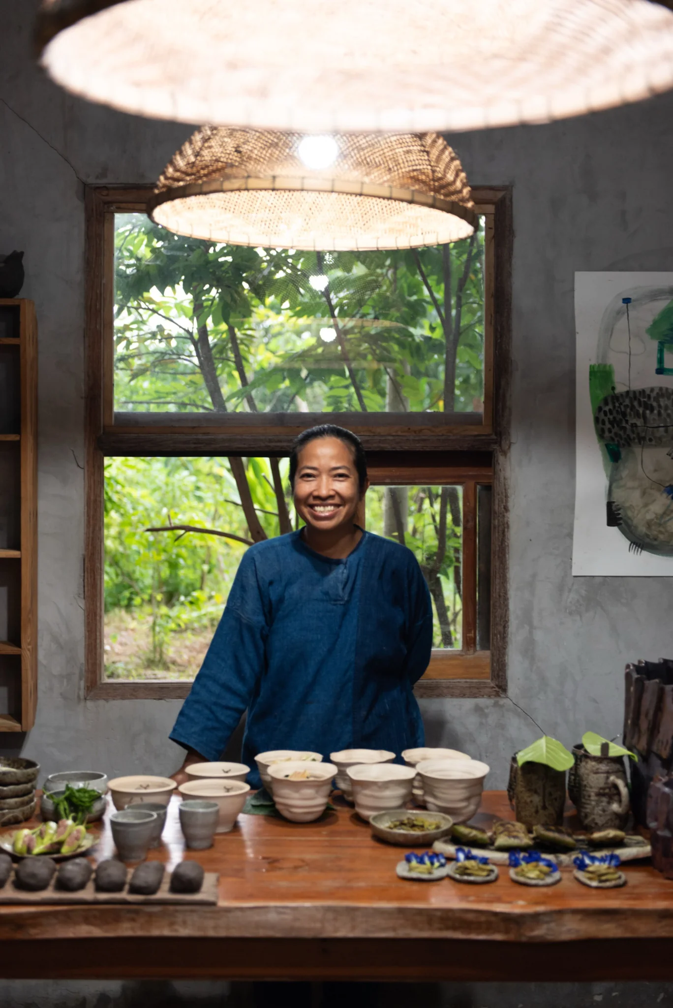Eve Nutthida Palasak is a fashion designer, researcher, and founder of Zao and Foundisan—two initiatives that reimagine Isan’s cultural identity through contemporary design and gastronomy. Originally from Ubon Ratchathani in Northeast Thailand, she returned to her hometown after years in Bangkok’s fashion industry to reconnect with her roots. Drawing on family traditions, she revived an ancestral recipe and established the acclaimed restaurant Zao. At the same time, she began collaborating with rural artisans to breathe new life into traditional weaving, bridging local craft with modern sensibilities and storytelling.