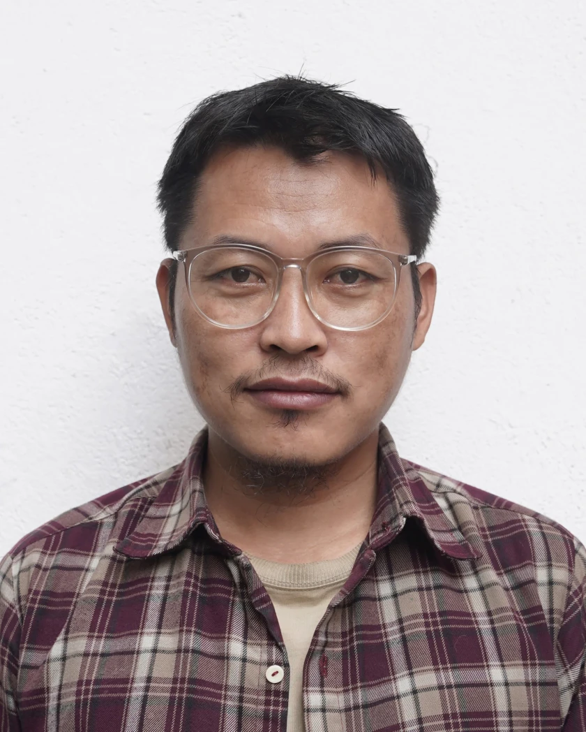Mekh Limbu is an artist based in Kathmandu by way of Dhankuta. Belonging to the Adivasi-Janajati Limbu community, his work addresses the geopolitical fractures that stretch and shape Indigeneity. His use of archival matter is grounded in a need for the intergenerational transfer of language, ritual, and memory. Recently, he has also been incorporating vocabularies of weaving to evoke Indigenous modes of knowledge and reclamation. His works also document the ramifications of Nepal’s labour migration industry on his family, underscoring the estrangement of traditional kinship structures. He is a co-founding member of the artist collectives Artree Nepal and Yakthung Cho.